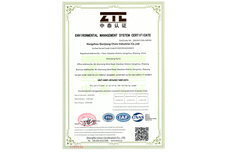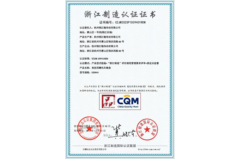 Certificato di certificazione della produzione di Zhejiang