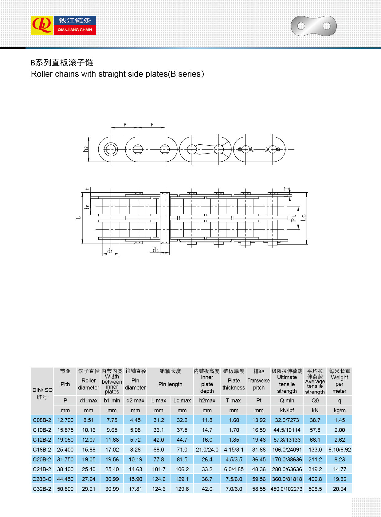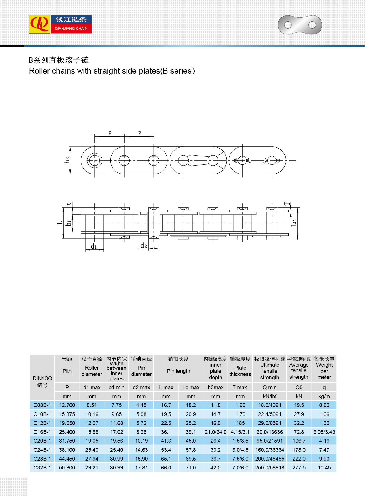 Le catene a rulli con piastre laterali diritte (serie B) sono progettate per offrire efficienza e affidabilità senza pari nella trasmissione di potenza, rendendole la scelta migliore per un'ampia gamma di applicazioni industriali. Queste catene sono progettate con precisione per garantire prestazioni fluide e costanti, anche in condizioni difficili. Il design della piastra laterale diritta migliora la resistenza e la stabilità, consentendo loro di gestire carichi più elevati mantenendo la funzionalità. Una delle caratteristiche distintive di questa serie è la sua eccezionale efficienza di trasmissione della potenza. La progettazione precisa riduce l'attrito e la perdita di energia, garantendo la produzione dei tuoi macchinari.