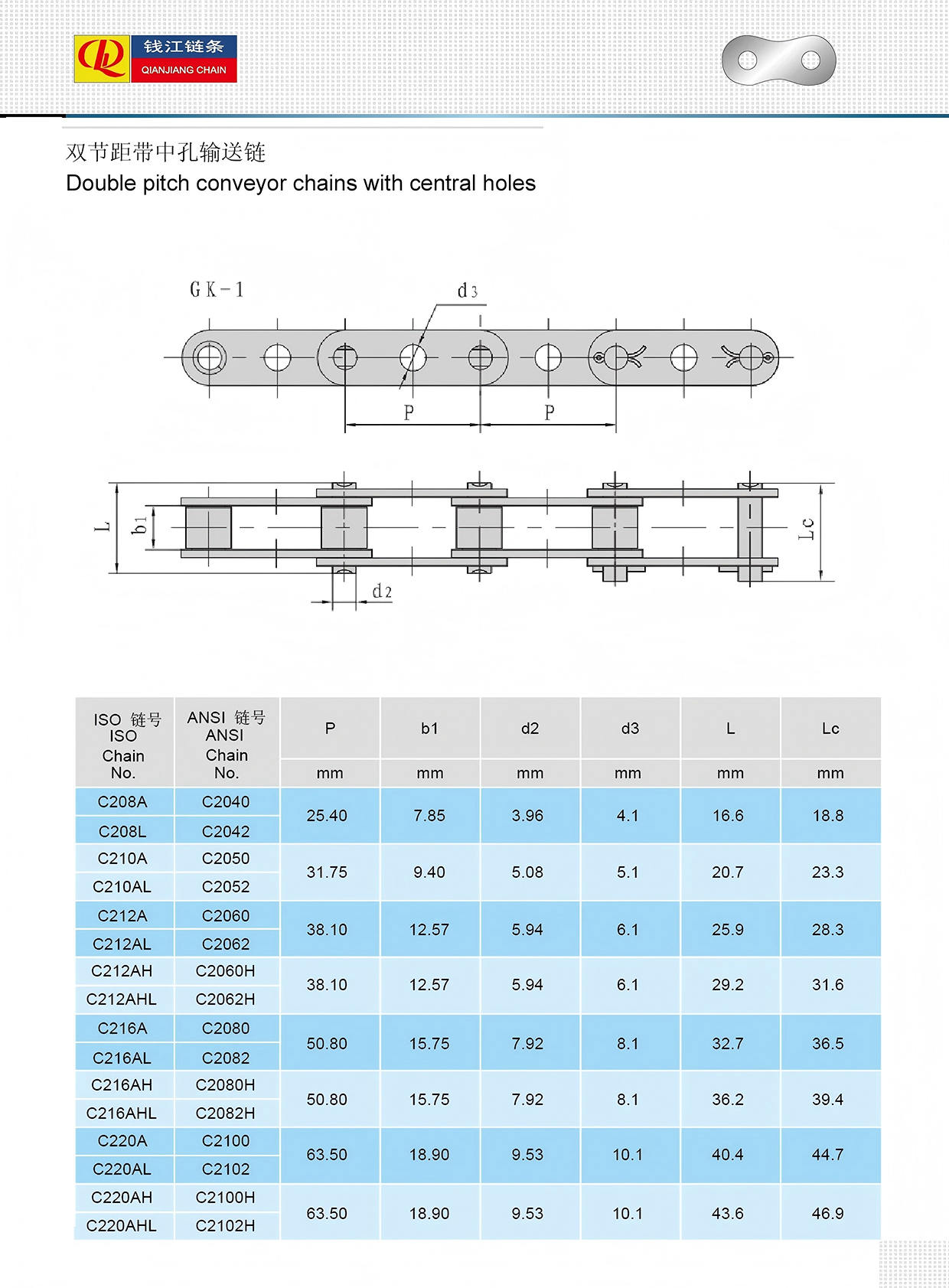 Le aziende beneficiano di una maggiore produttività poiché queste catene consentono la movimentazione orizzontale o inclinata delle merci senza soluzione di continuità, riducendo gli interventi manuali e i costi operativi. Che tu stia razionalizzando i processi di produzione o ottimizzando la logistica di magazzino, le catene di trasporto a doppio passo con fori centrali offrono adattabilità ed efficienza senza pari, consentendo alle tue operazioni di funzionare più velocemente, in modo più fluido e intelligente. Scegli questa soluzione di trasporto avanzata per migliorare oggi stesso le tue capacità di movimentazione dei materiali!