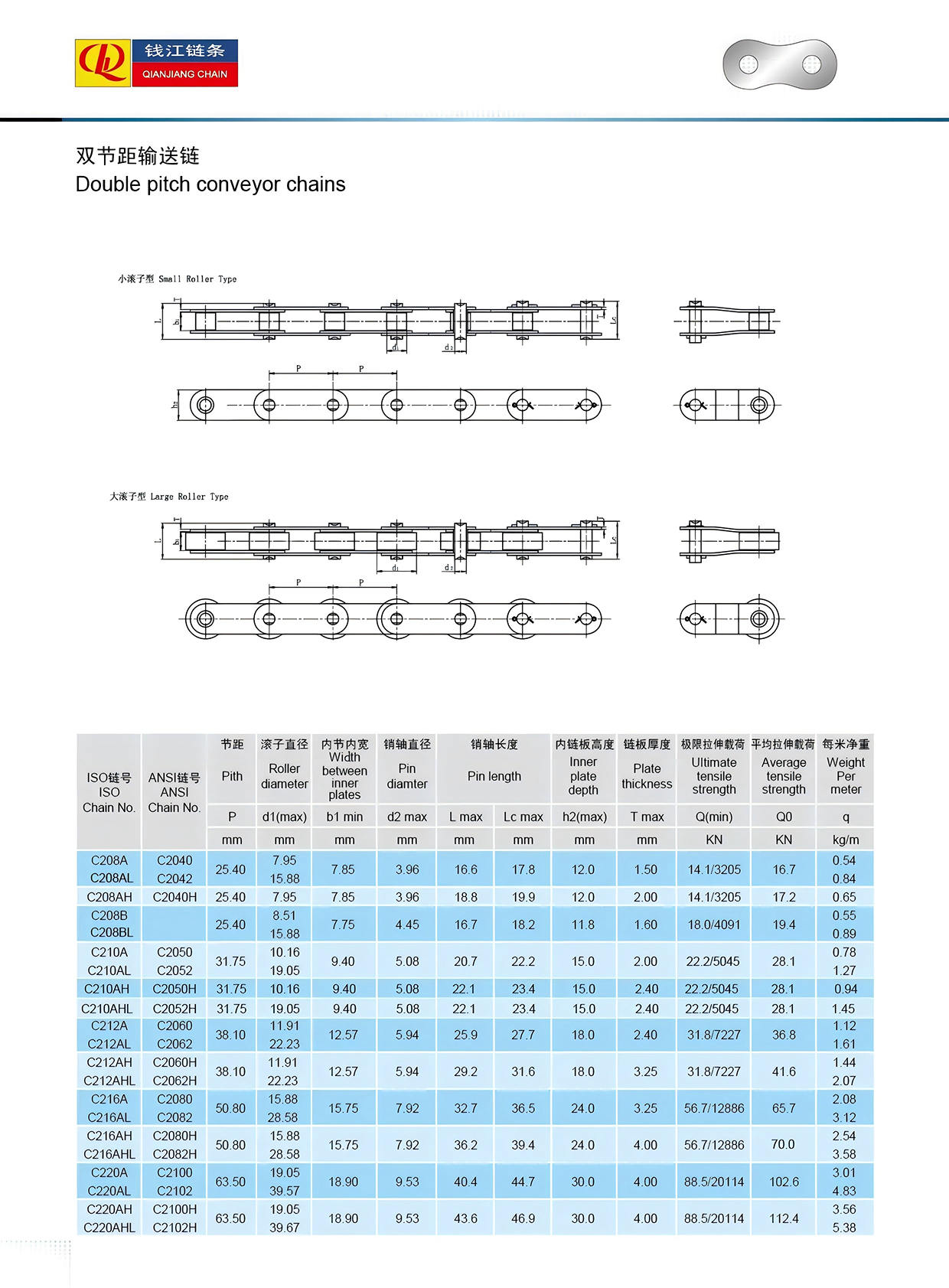 Le catene di trasporto a passo doppio sono ideali per attività di trasporto da leggere a medie in settori quali l'imballaggio, l'agricoltura, la logistica e la lavorazione alimentare. La loro struttura supporta un movimento efficiente delle merci su lunghe distanze, rendendoli la scelta preferita per i sistemi di trasporto che privilegiano un funzionamento regolare e a basso attrito. Sia in condizioni asciutte che corrosive, queste catene offrono prestazioni costanti e affidabili.
