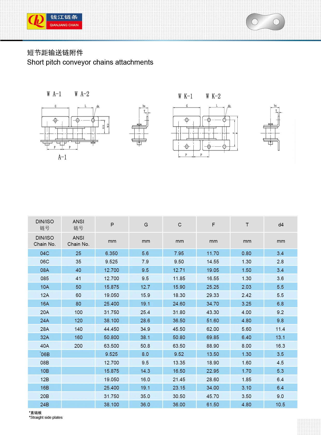 Accessori per catene di trasporto a passo corto