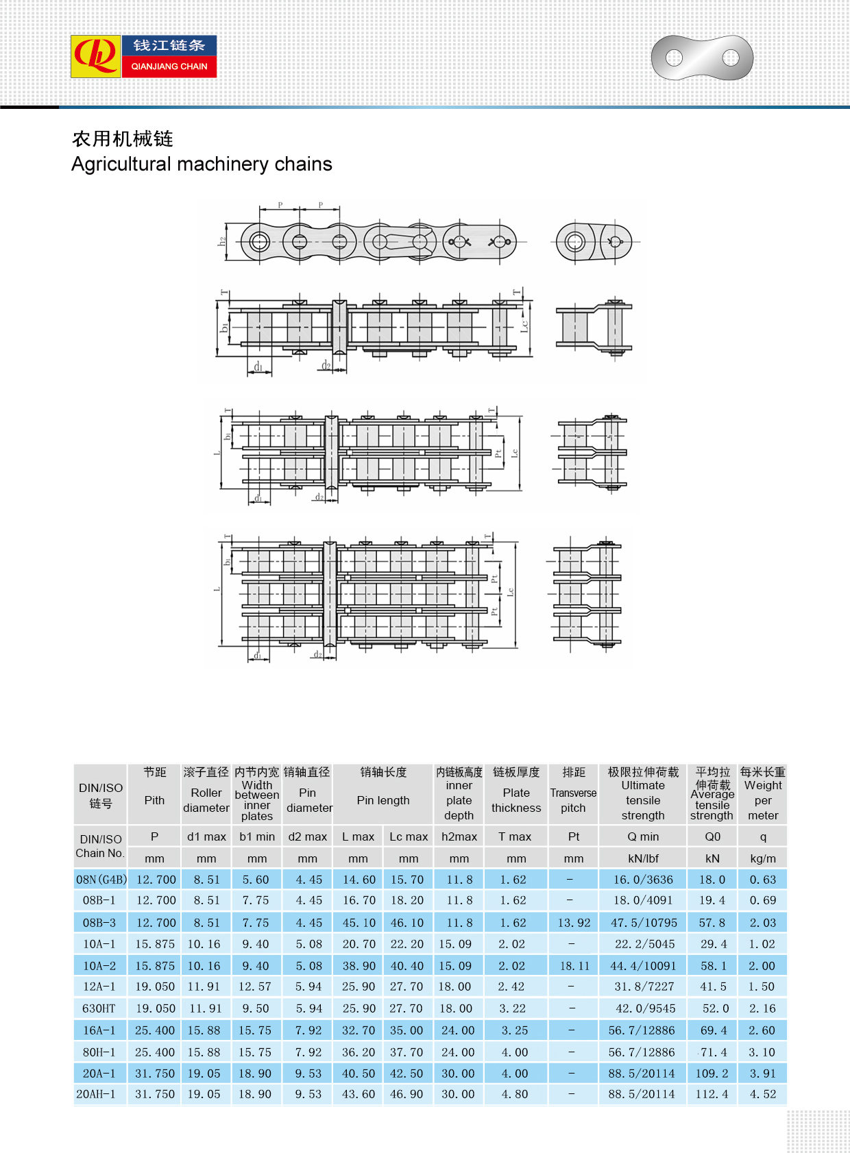 Specifiche Varie Catene per macchine agricole