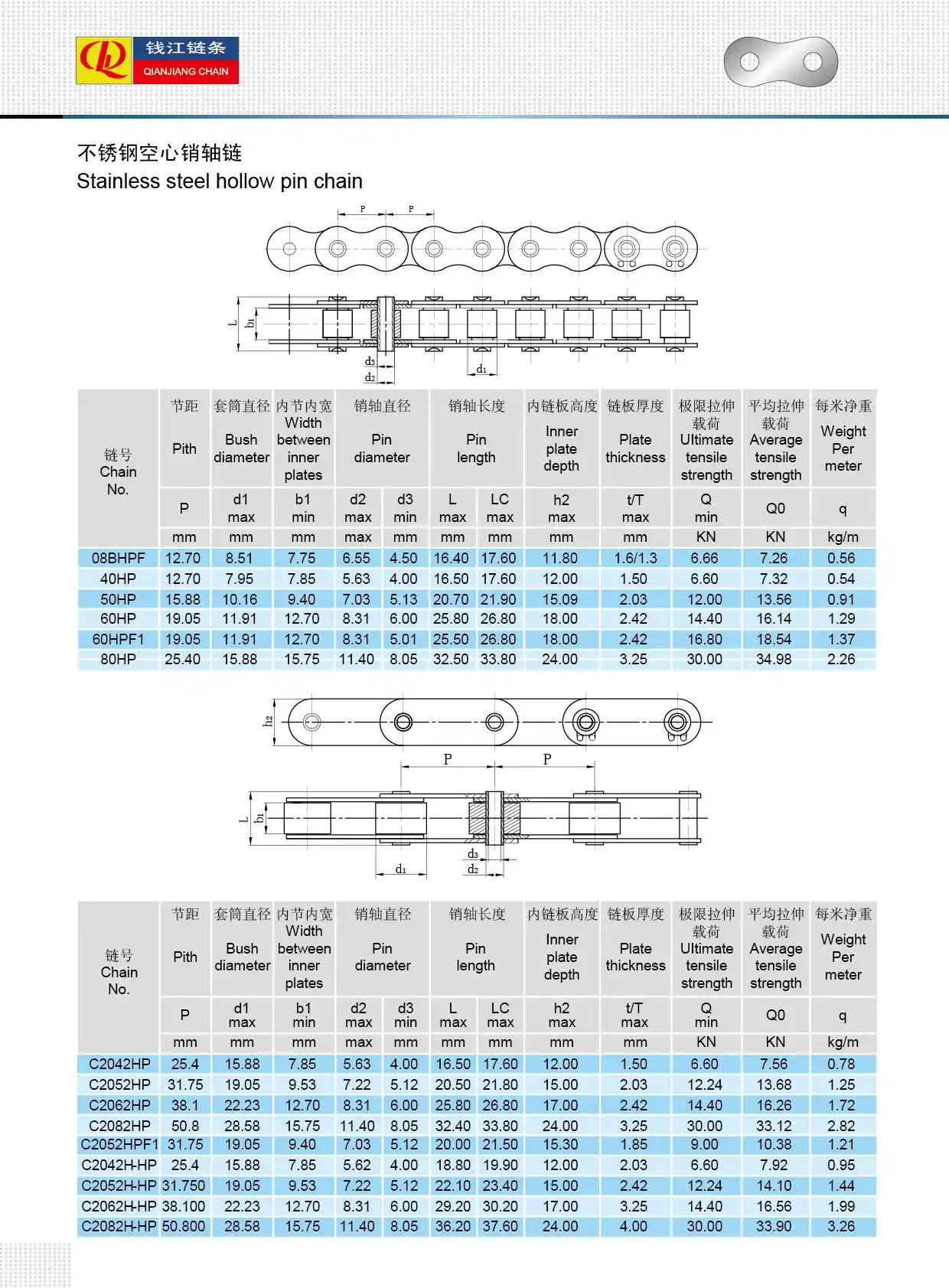 Dal punto di vista applicativo, le catene a perno cavo in acciaio inossidabile eccellono in diversi settori come la lavorazione alimentare, l'imballaggio, la produzione automobilistica e altro ancora. Servono per trasportare prodotti delicati, accogliere accessori per compiti specifici o funzionare in modo affidabile in condizioni di stress elevato. Scegli le catene a perno cavo in acciaio inossidabile per un modo più intelligente e affidabile di soddisfare le tue esigenze industriali!