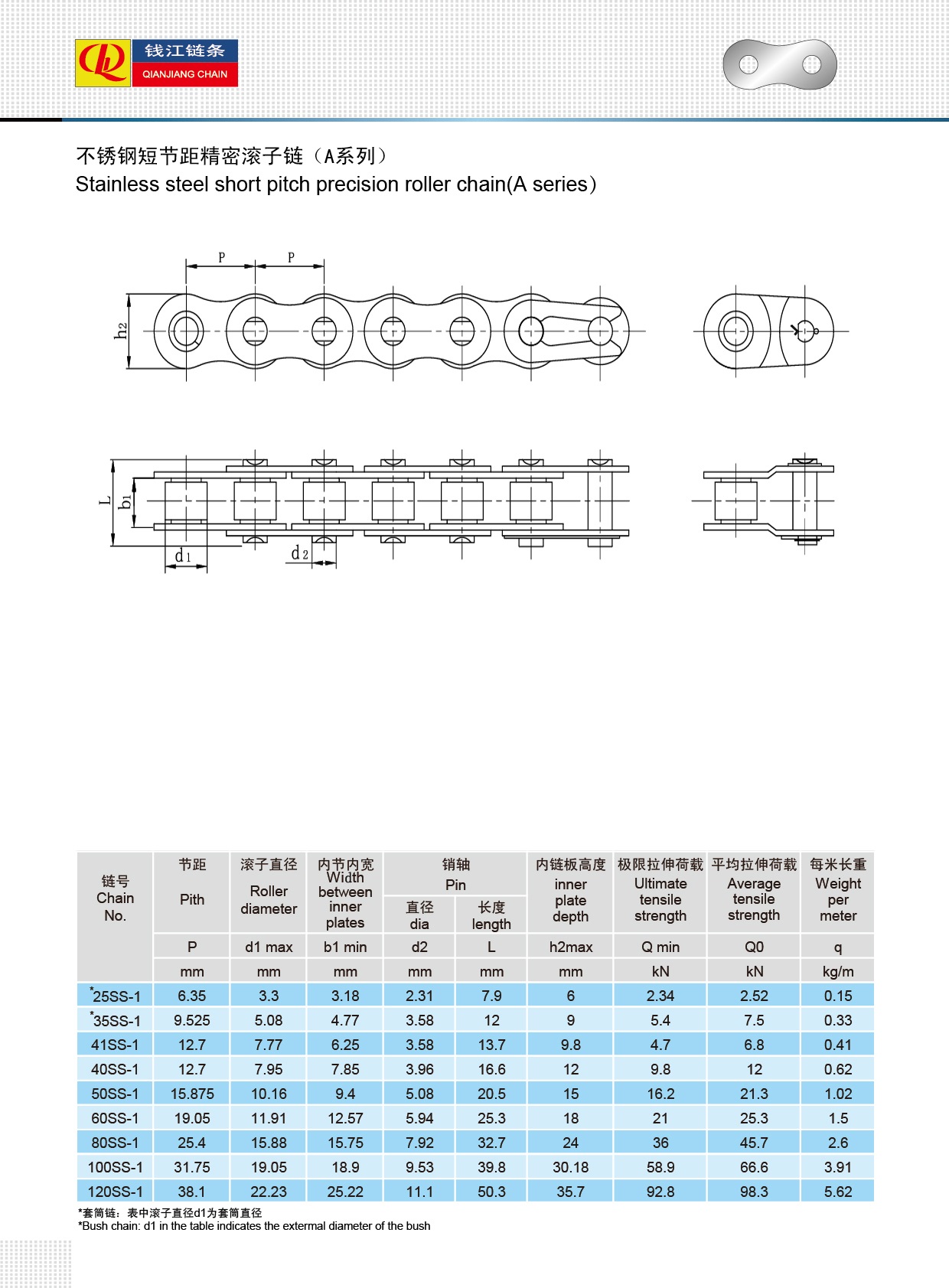Catene a rulli di precisione a passo corto in acciaio inox